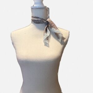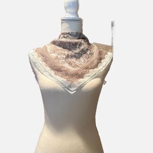 Elevate your style with this chic white and brown patterned scarf. A versatile accessory for any wardrobe.