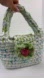 Elevate your style with this chic crochet shoulder bag, featuring a stunning white and green design with a pink floral accent. Perfect for any occasion.