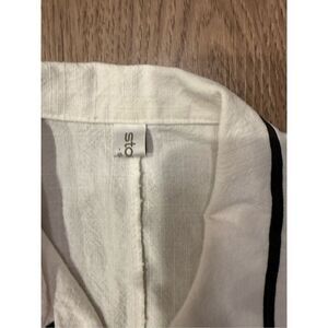 Chic White Short Sleeve Button-Up Blouse with Black Trim – Size Small