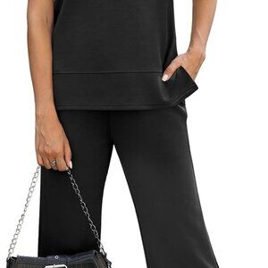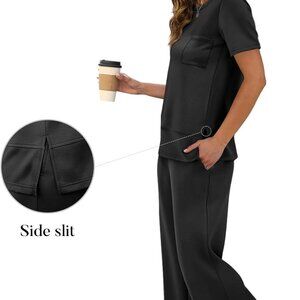 Features: Light-as-air spacer fabric makes this set incredibly soft, breathable, and drapey — great for staying cool. The top has a classic crewneck, short sleeves, a front pocket, and stylish side slits, plus enough length to cover your hips and tummy. The cropped pants have an elastic drawstring waist, wide-leg silhouette, and handy side pockets to keep your essentials secure while you lounge, run errands, or travel. Versatile enough to dress up or down for anything from casual weekends to vacation days.