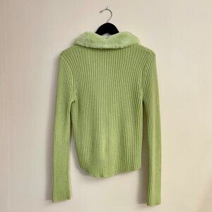 #WildFable #FauxFur #Cardigan #Y2K #90s #Coquette #Balletcore #KnitSweater #SageGreen #LimeGreen #Ribbed