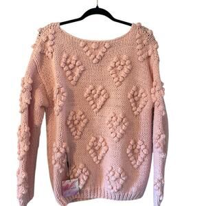 Chic Wish Heart Pom Pom Sweater V Neck Pink Hand Knitted Size S/M Wool Blend. This is a beautiful sweater, NWT. No stains or holes.