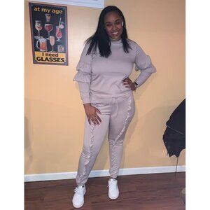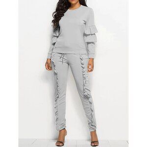 Features: This cute tracksuit includes a long sleeve pullover with adorable balloon sleeves and a bodycon fit, paired with high-waisted pants with a ruffle detail, drawstring waist, and handy pockets. Made from a soft, stretchy polyester-spandex blend, it feels comfy enough to wear all day, whether you're lounging, running errands, or hitting the gym.