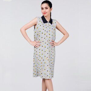 Chic Women's Blue, White, Yellow, Collared Cotton Blend Pineapple Dress Size 2X