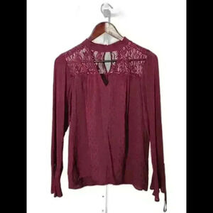Chic Women's Burgundy Long Sleeve Top with Lace Detail