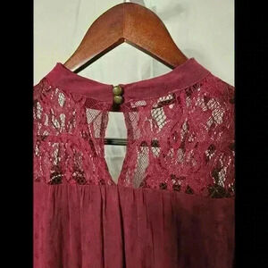 Elevate your wardrobe with this stylish burgundy long sleeve top, perfect for any occasion. Crafted from lightweight fabric, it features intricate lace detailing across the chest that adds a touch of elegance. The V-neck design and relaxed fit ensure comfort while keeping you fashionable. Pair it with jeans for a casual outing or dress it up with a skirt for a night out. Key features include: