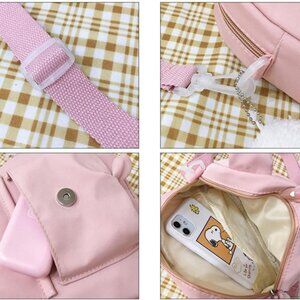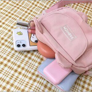 Features: This trendy mini crossbody is made from durable nylon with a comfortable polyester lining. It has multiple pockets to organize your wallet, phone, and cosmetics without feeling bulky. The standout feature? An adorable bear ornament that adds a touch of kawaii charm. Perfect for everyday city commuting, outings, or casual errands.