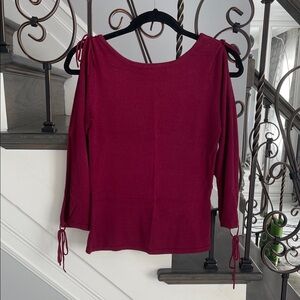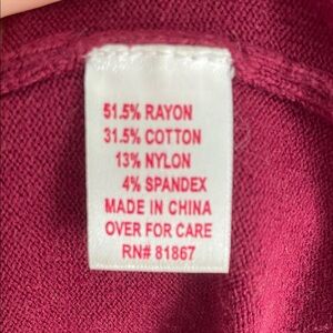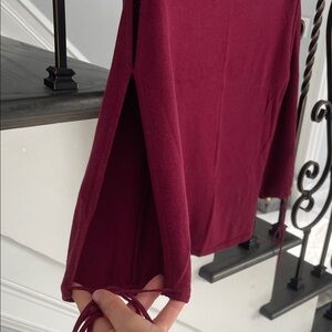 Elevate your style with this chic burgundy knit top/sweater. This sweater is size medium. Made out of 51% rayon and 31% cotton. It is in the great pre owned condition. No holes, no pulls. It comes from the smoke and pet free home.