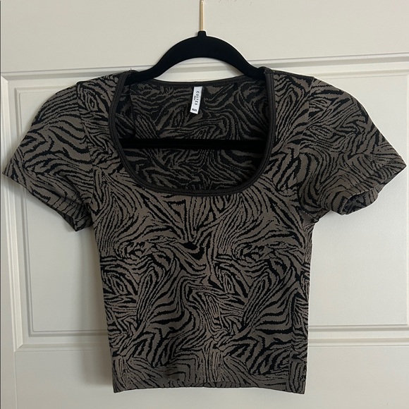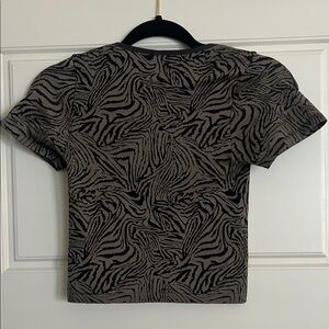 Elevate your style with this chic zebra pattern crop top. Featuring a striking black and brown design, it's perfect for a trendy, casual look.