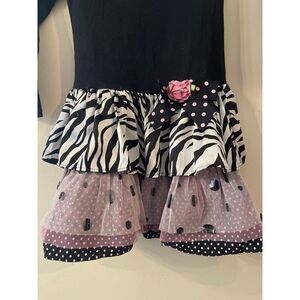 This eye-catching dress is a stylish blend of bold zebra print and delicate polka dots. The tutu-style skirt adds a playful, feminine touch, while the black bodice provides a sleek, sophisticated contrast. With its vibrant colors and whimsical design, this dress is sure to make you the center of attention wherever you go!