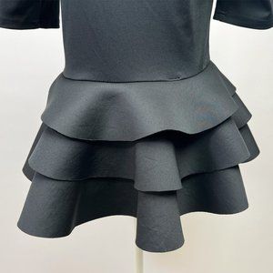 Discover this chic and elegant black casual dress with a delicate frill, perfect for various occasions. This dress is in size small and is gently used, making it a fantastic choice for cocktail parties, awards ceremonies, and other special occasions. With its upper knee-length design, it offers a flattering and stylish look.