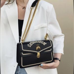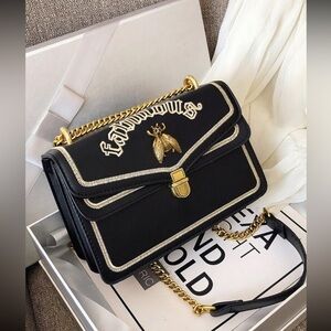Chic and Trendy Black & Gold Double-Layered Flip Cover Luxury Chain Shoulder Bag