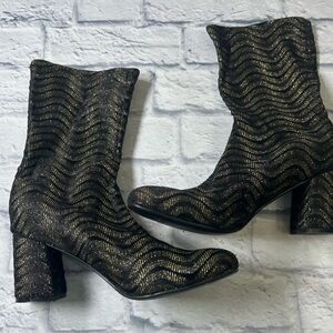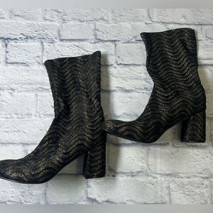 Chic by Lady Coutureny “Starlight” Black and Gold Women's Boots.Size42(10) NWOB.