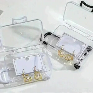chic mini suitcase clear and black. Great for storing jewelry or beeds. can be used as a gift box.