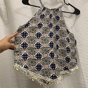 Another chic blouse, with cute patterning and lace trim at the bottom. Good used condition