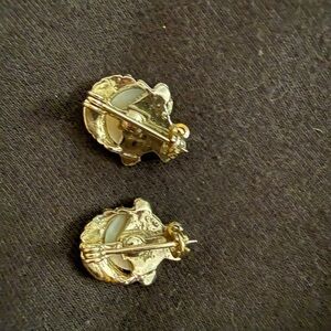 Enhance your style with this chic brooch set in gold and cream. Perfect for adding a touch of elegance to any outfit.