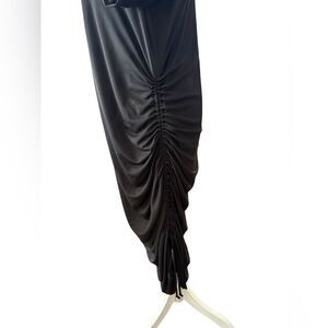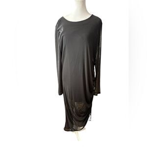 Discover elegance with this chic black dress, featuring long sheer sleeves and a modern design.