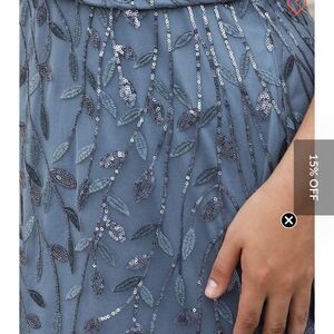 Embrace sophistication with this chic blue maxi dress. Featuring a delicate leaf pattern, it's perfect for any special occasion.
