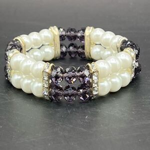 Chic Bride Ivory Color Imitation Pearl Crystal Purple Beads Stretch Bracelet