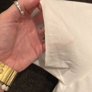 Super soft t shirt material with raw hem at sleeves and bottom for a luxe and chic feel and look!