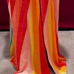 Step out in style with this vibrant sundress, featuring a striking one-shoulder neckline and a sleeveless design. Perfect for a night out or cocktail event, the dress showcases bold red, pink and yellow hues that exude energy and charm. Its lightweight fabric ensures comfort and fluid movement, making it an ideal choice for any lively occasion. (NWOT)