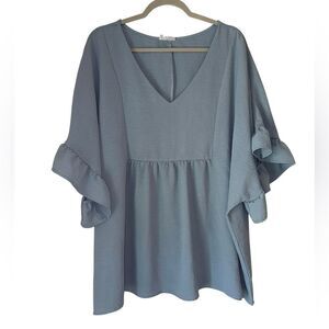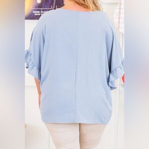 Chic Soul Holding Steady Top Light Blue ChambrayV-Neck Women's Top 2X Plus Size