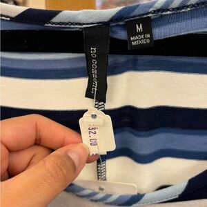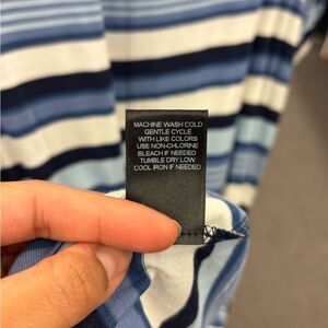 Step out in style with this chic blue and white striped dress. Perfect for any occasion, it offers a blend of elegance and comfort.