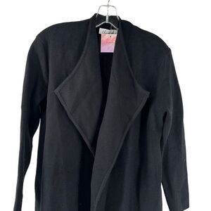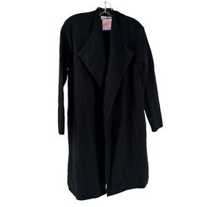 ChicWish Cardigan Sweater Black Wool Blend Long Line Size M-L Draped Open Front