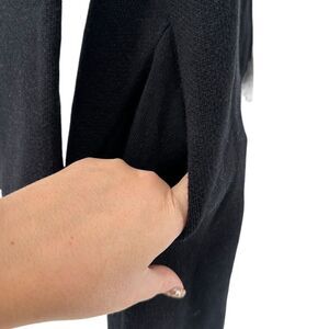 ChicWish Cardigan Sweater Black Wool Blend Long Line Size M-L Draped Open Front With Side Slip Pockets