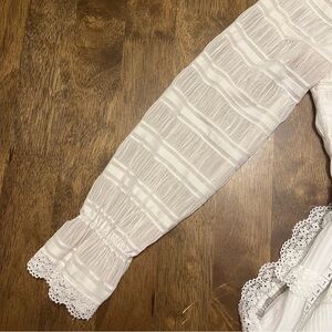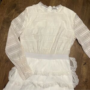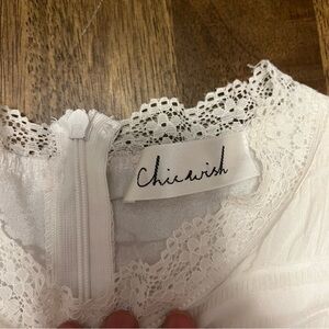 This stunning Chicwish dress features a romantic design with ruffled tiers and lace in a pristine white hue. The long bishop sleeves and high neckline add a touch of elegance, making it perfect for a bride seeking a timeless look. Crafted with a light and airy fabric, this sundress offers a graceful silhouette ideal for special occasions.
