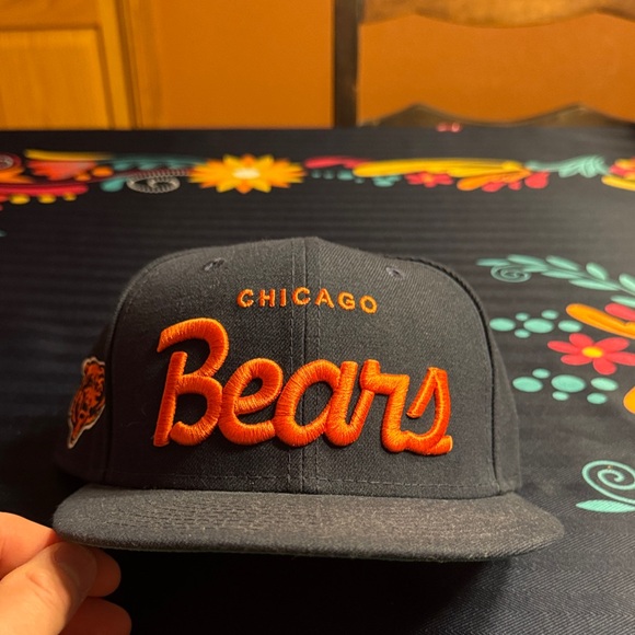 Stylish Chicago Bears cap with bold orange lettering. Features team logo on the side. SnapBack.