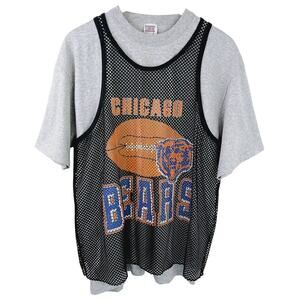 Chicago Bears VTG SZ L Single Stitch Unisex Gray Tee With Mesh Tank Overlay RARE