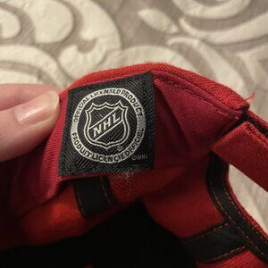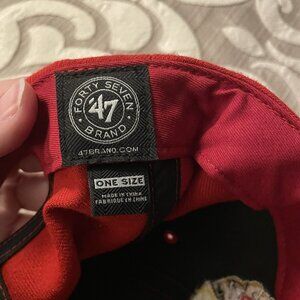 This hat is a Chicago Blackhawks hockey cap by '47 Brand, featuring the team's official colors and logo. It is an officially licensed cap for fans of the National Hockey League (NHL) team, the Chicago Blackhawks. The cap is adjustable to fit all fans in one size and is made in China. This red cap is perfect for showing support for the team during games or casual wear, making it a must-have accessory for any hockey fan. Brand New. Shipped with USPS. From a smoke free and pet free home.