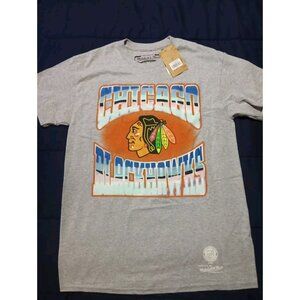 Show off your love for the Chicago Blackhawks with this Mitchell & Ness T-Shirt. The shirt features the iconic team logo in black and gray color scheme. It is made of high-quality material and comes in a men's regular size medium. The short sleeve T-shirt is perfect for any occasion and is sure to make you stand out in the crowd. Whether you're a die-hard fan or just looking for a stylish addition to your wardrobe, this shirt is a must-have.