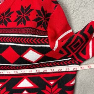 Chicago Blackhawks ugly Christmas sweater in red and black featuring bold team graphics and festive holiday detailing. Cozy knit, spirited design—perfect for NHL fans, holiday parties, and game-day celebrations. Size L.