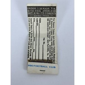 Chicago Blitz USFL Matchbook Empty Football 1984 Home Schedule Puttin On The