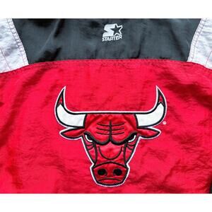 Chicago Bulls 90s STARTER puffer 1/2 Pullover jacket yth M red black NBA vintage
