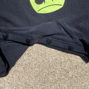 All rompers are made from upcycled tee shirts and are one-of-a kind. Upcycled t shirts are pre-washed before construction, carefully made, and all seams are surged for durability in a smoke free home.