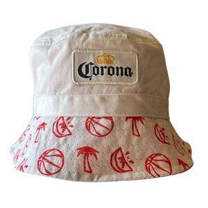 This reversible bucket hat features a stylish basketball and Bulls logo design with a unique Corona embroidery, offering versatility and protection.