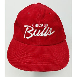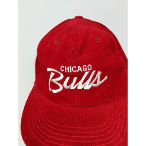 Chicago Bulls Hat Script Snapback Cap Corduroy NBA 90s 1990s Jordan NBA VTG