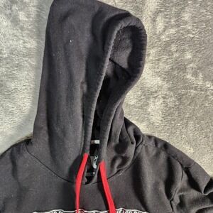 The Chicago Bulls Hoodie is a men's small pullover style top made from a lightweight fleece fabric. The shirt features a crew neckline, short sleeves, and a logo accent. It is suitable for activewear and can be worn in various seasons including winter, summer, fall, and spring. The black, white, and red color scheme and Bull theme make it a classic choice for any NBA fan or basketball enthusiast. This official NBA brand hoodie is machine washable for easy care and is perfect for representing the Chicago Bulls in style.