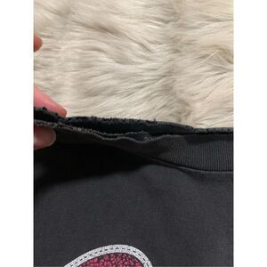 Does have some distressing around collar. Both arm pits have holes and there is some holes on Bull logo. Please see photos and zoom.