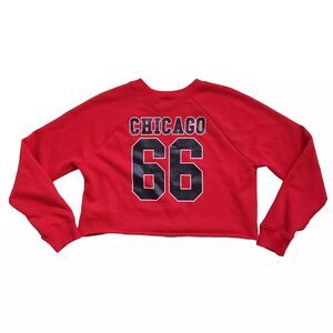 Chicago Bulls NBA Crop Sweatshirt Womens Large Red Crewneck Long Sleeve Logo
