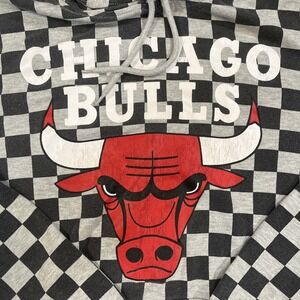 Chicago Bulls NBA Hoodie Men's M Black Gray Checkered Pullover Sweatshirt