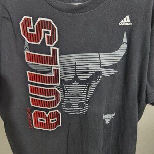 Chicago Bulls Shirt Mens Black Red NBA Basketball Adidas Graphic Short Sleeve
