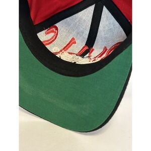 Nice condition overall, has light staining on the inside of the brim. Cool graphics and spell outs, with the bull logo dripping down onto the brim. See photos for description of condition.