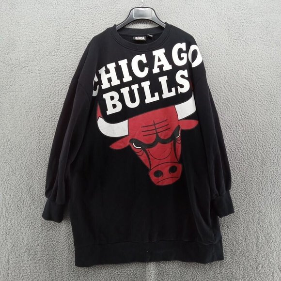 Chicago Bulls Sweatshirt Womens Large Black Graphic Oversized X-Long NBA