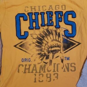 Boys gold Chicago Chiefs T-shirt with attached gray flannel sleeves