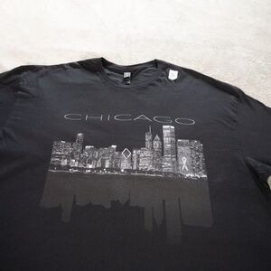 Chicago City Skyline Lights At Night Graphic T-Shirt Men’s 3XL Black Cityscape