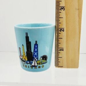 Chicago Cityscape Skyline Blue Ceramic Shot Glass Souvenir Postcard Factory